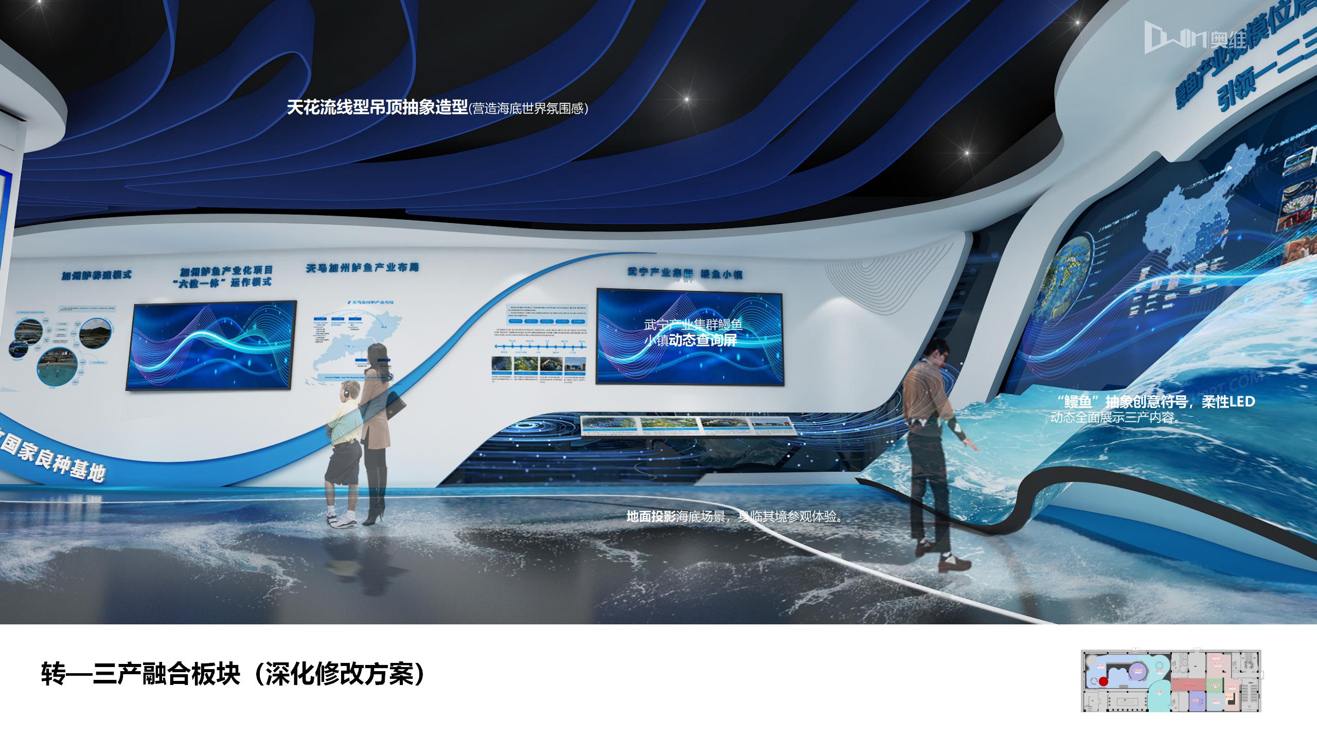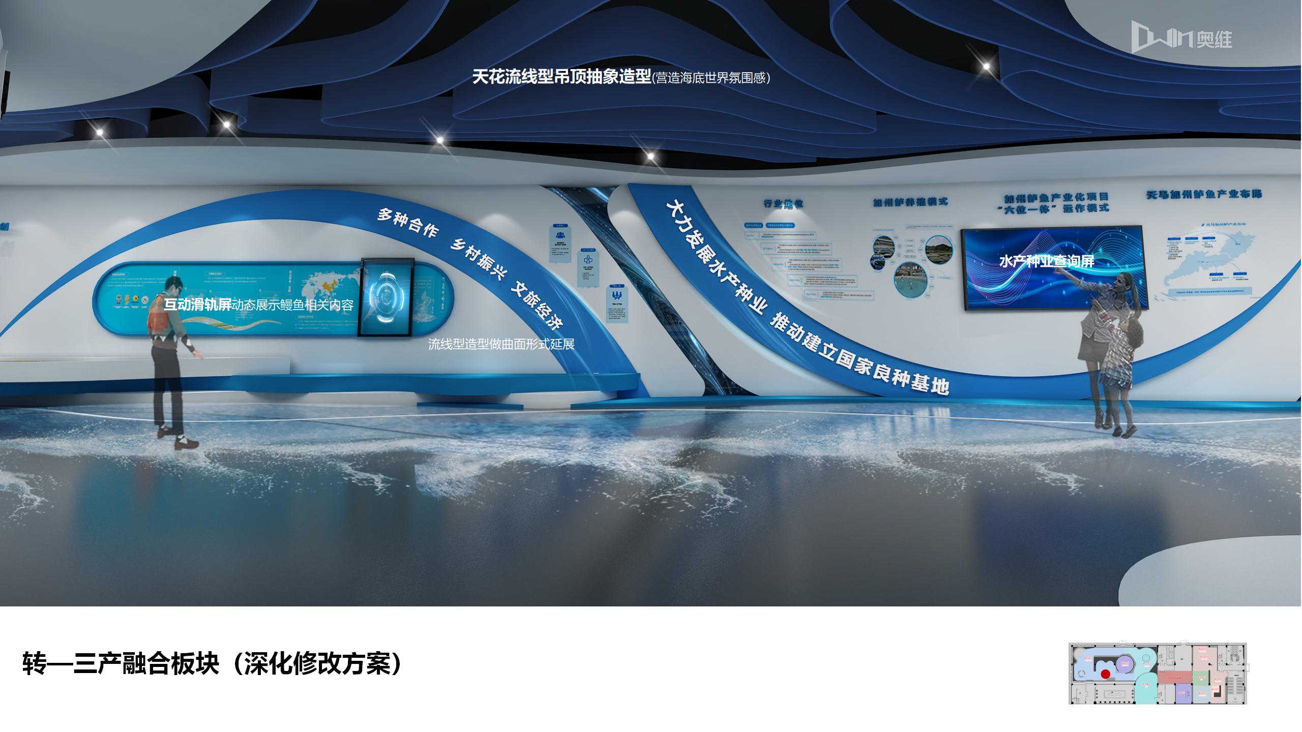 建瓯下水南演艺中心,以“闽山闽水、千年建州”为设计主题。大堂以建瓯本地产“茶、竹、酒”为脉络,结合建瓯山水特性。提炼曲线元素来体现“茶之雅致、竹之风骨、酒之真性”。美术展厅以“山石”立意,通过几何穿插形式并在展墙开窗的形式,让单一空间变得丰富、有序。建瓯非遗馆以“采风”为切入点,通过造型及多媒体设备展示建瓯社会生活百态,把酒文化、茶文化、民歌风俗等生活百象收集于此